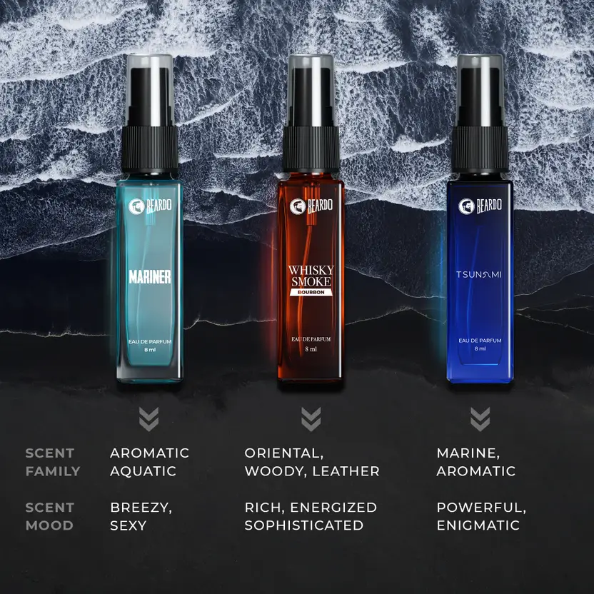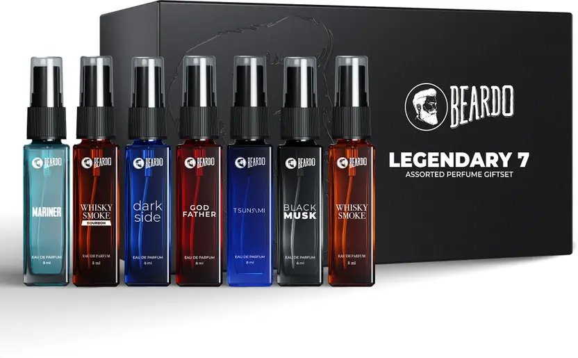 Experience the SCENTS of sophistication with Beardo’s 7-in-1 Mini Fragrance Gift Set. Exquisitely curated for BOLD BOSS MEN, a collection of captivating scents, perfectly sized for any adventure. Why choose one when you can have it all? Give the ULTIMATE gift of luxury and style today.